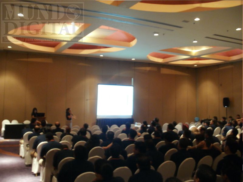 En esta configuración puede usted optar por contratar un técnico especialista en audio para ecualizar el sonido durante toda la conferencia